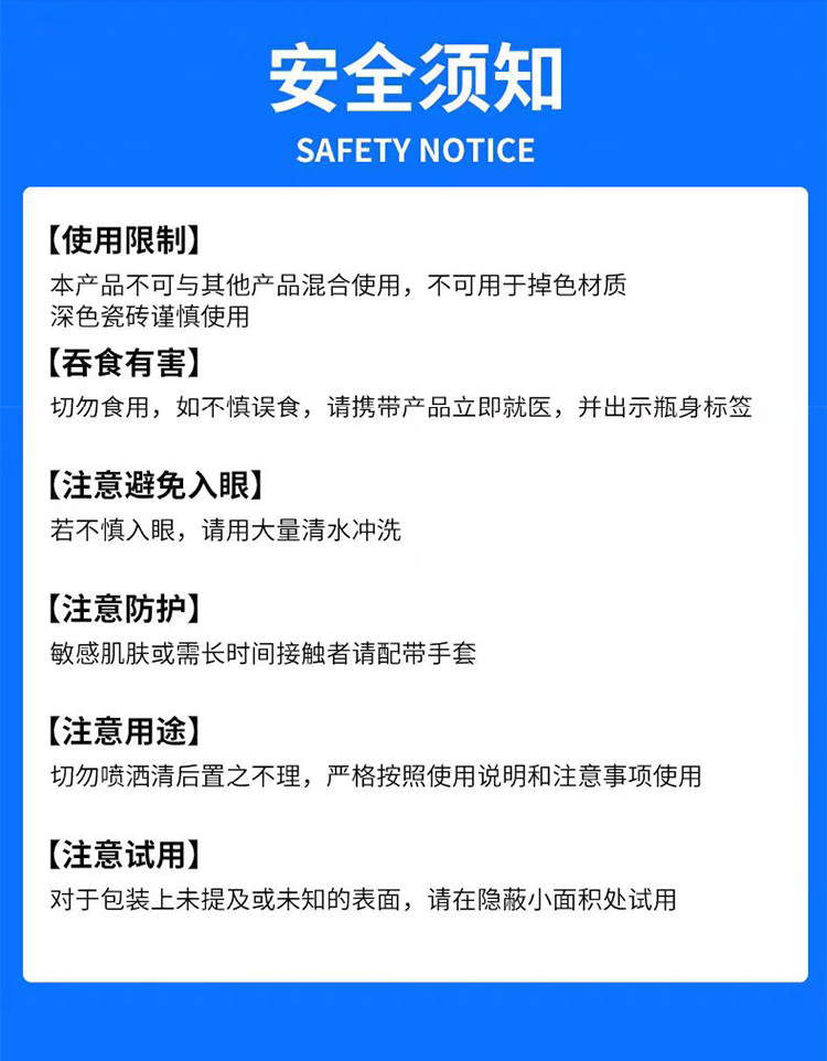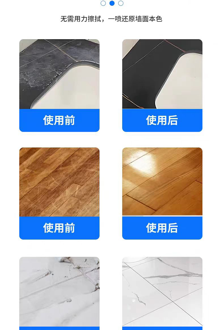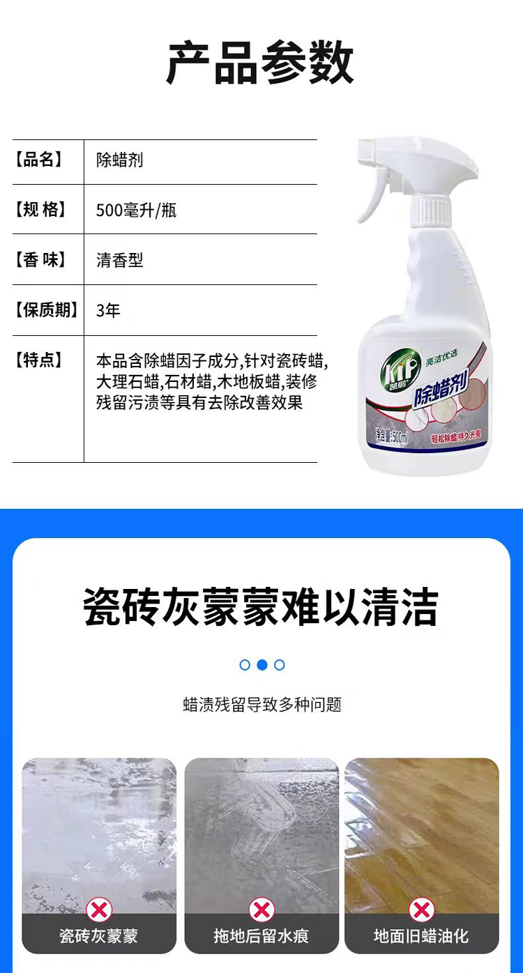★本品含除蜡因子成分,针对瓷砖蜡,大理石蜡,石材蜡,木地板蜡,装修残留污渍等具有去除改善效果。